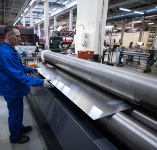 A calandra é constituída por um conjunto de rolos, com movimentos giratórios e pressão regulável. O material a ser curvado é colocado entre rolos que geram e pressionam até que o curvamento esteja de acordo com as dimensões desejadas.